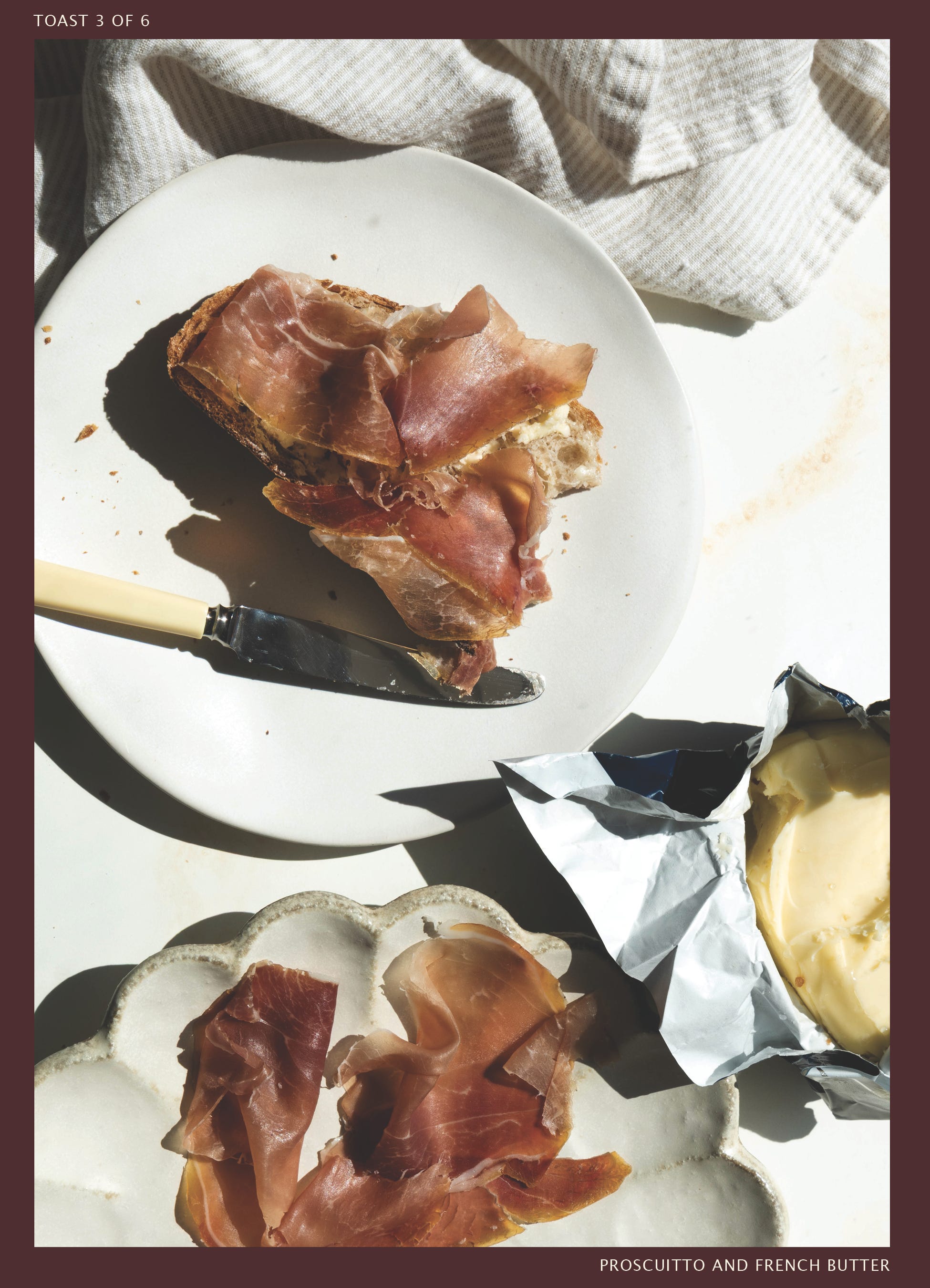 Spread butter on quality, fresh or toasted bread, then layer a small mountain of thinly sliced ham or prosciutto. Voila, transports you right to Paris.